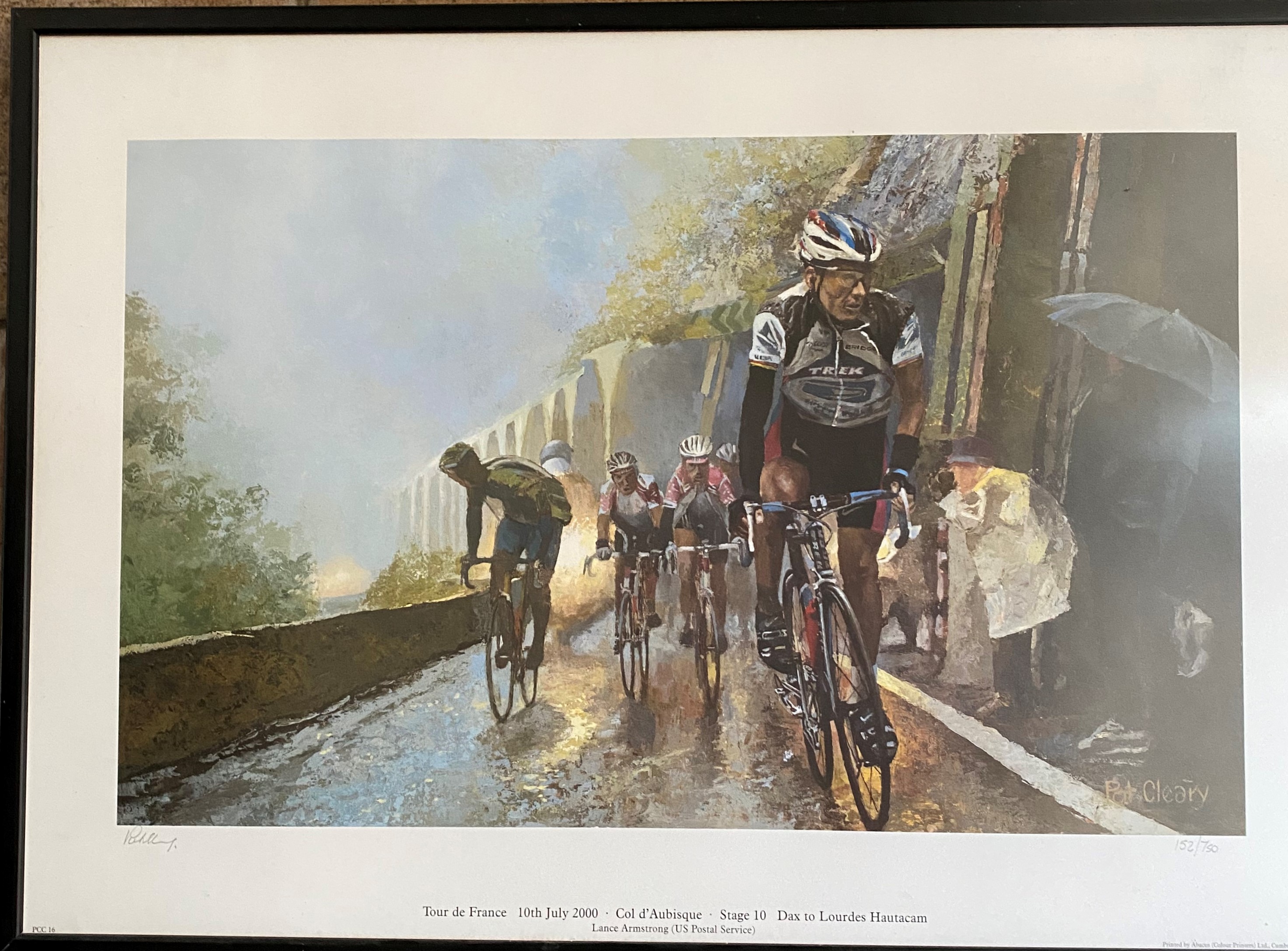 Framed, numbered and signed Pat Cleary (artist) print - Lance Armstrong